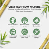 The wayfarer style of our bamboo sunglasses is timeless and suits a variety of face shapes and personal styles. This classic design has remained a favorite for decades, so you can count on it to never go out of fashion. Because they are stylish, durable, and eco-friendly, these sunglasses are perfect for everyone—from beachgoers to city explorers. With their unique bamboo finish, they stand out in a crowd, providing a fashionable yet functional accessory for all your adventures.