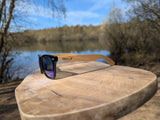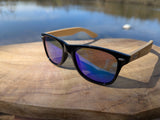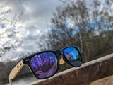 Eco‑Friendly Bamboo Panda Sunglasses | Wayfarer Style, Mirrored Purple, Polarised UV400 Lens