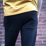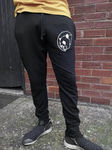 Embroidered Classic Panda Design on premium black slim fit smart/sport Joggers, designed for exceptional comfort.